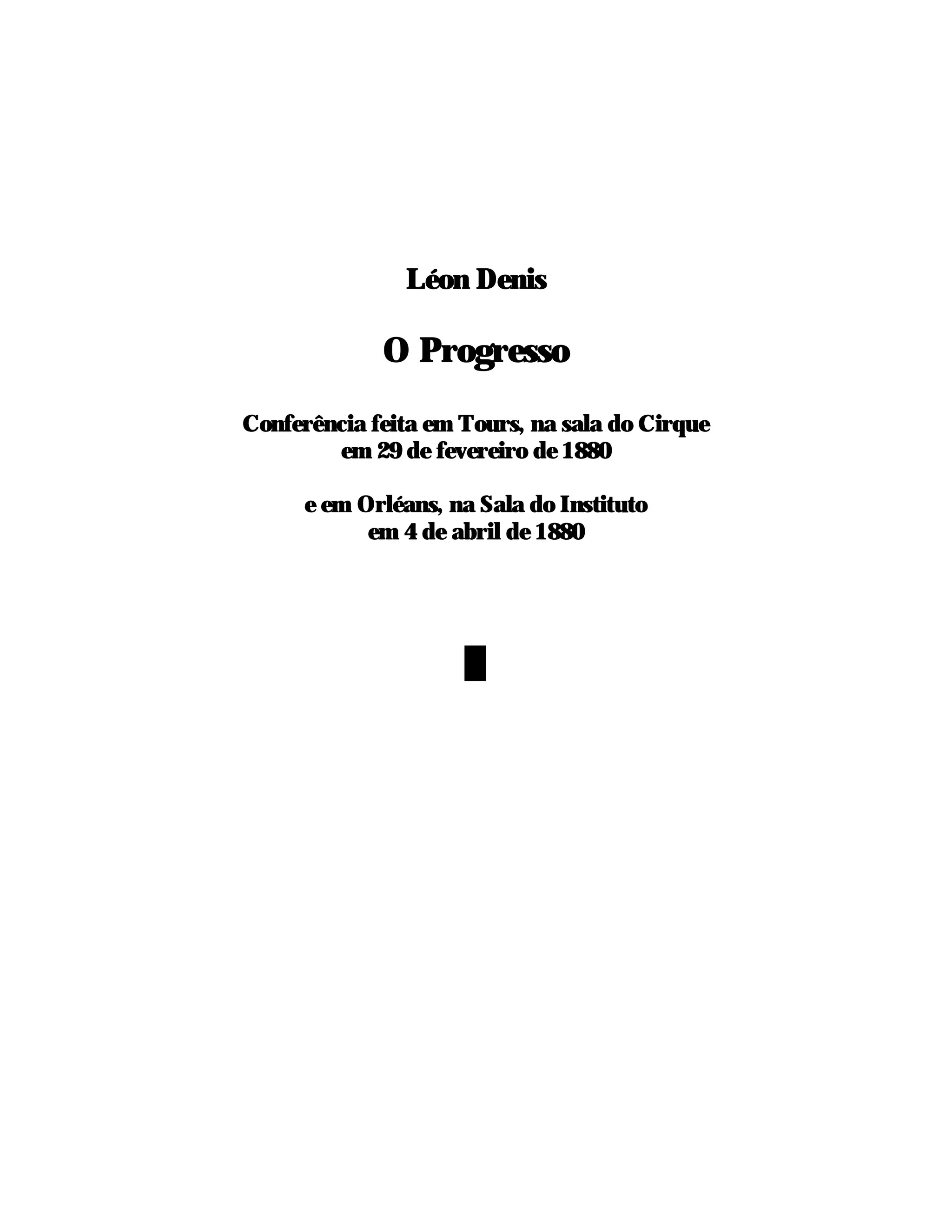 O documento resume um discurso de Léon Denis sobre o progresso. Em três frases: