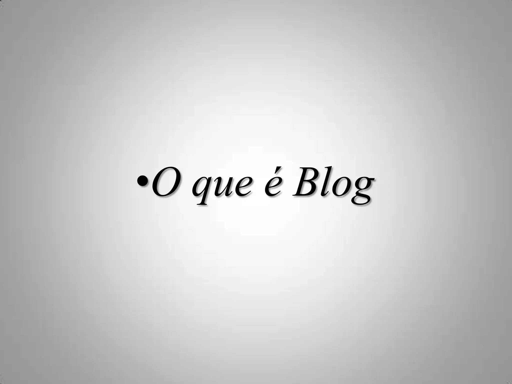 O documento descreve o que é um blog, como é um símbolo popular da internet que permite compartilhar notícias e comentários sobre assuntos de interesse ou funcionar como diários online de forma fácil sem necessidade de programação.