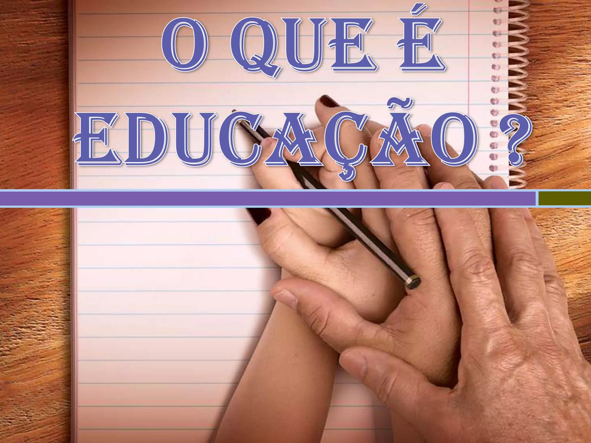 Educação é o desenvolvimento das faculdades físicas, intelectuais e morais de uma pessoa através da instrução sistemática para adaptá-la à vida social. A educação ocorre de diferentes formas em cada sociedade e cultura e não se limita à escola. Ela produz crenças e habilidades que constroem tipos de sociedades.