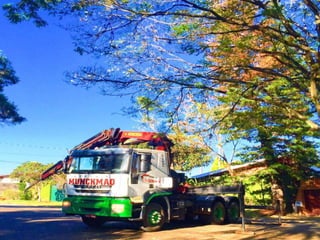 O Munck é um caminhão equipado com um braço hidráulico telescópico usado para içamento e movimentação de máquinas, equipamentos e cargas de forma segura através de um sistema de estabilização. Ele pode realizar funções como transporte de máquinas pesadas, içamento de cestos aéreos, trabalhos em obras e transporte de contêineres de forma versátil.