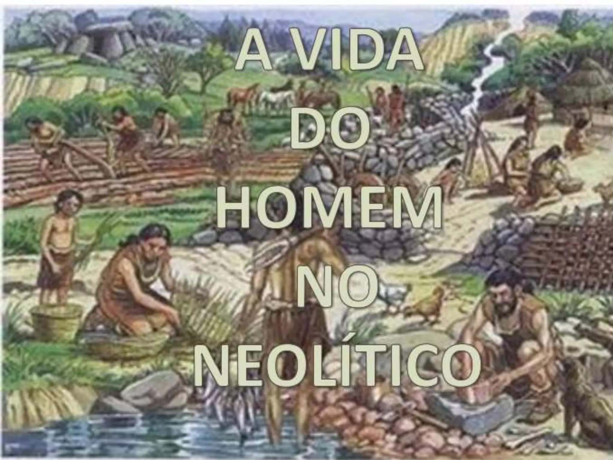 O documento descreve o período Neolítico, que começou por volta de 9.000 a.C. e caracterizou-se pela transição de comunidades nômades para assentamentos sedentários. Neste período, o homem começou a cultivar plantas e criar animais, e aperfeiçoou ferramentas como machados, enxós e mós. O principal foco da difusão do estilo de vida neolítico foi no Oriente Médio, especialmente na Palestina, Síria e norte da Mesopotâmia.