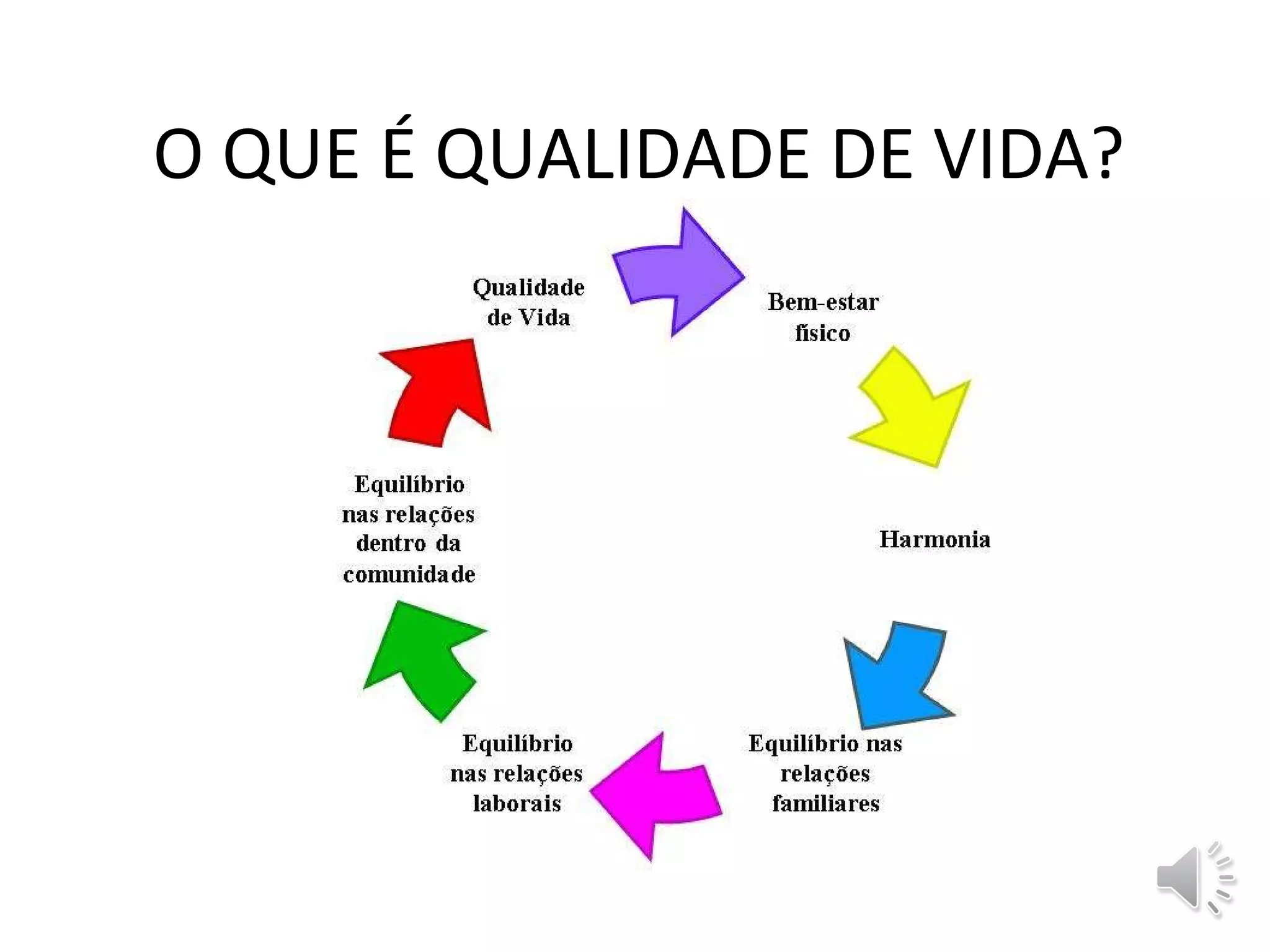 O documento discute o conceito de qualidade de vida, que envolve bem-estar físico, mental, emocional e nas relações sociais de uma pessoa. Fatores como estilo de vida, saúde e meio ambiente impactam a qualidade de vida de um indivíduo. A expressão corporal das emoções também é importante para o equilíbrio mental e físico.