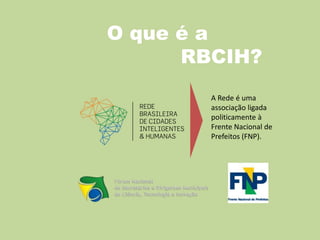 A Rede Brasileira de Cidades Inteligentes e Humanas (RBCIH) é uma associação ligada à Frente Nacional de Prefeitos formada em 2014 para promover a cooperação entre municípios brasileiros através do desenvolvimento de pesquisas e projetos de cidades inteligentes e humanas, visando soluções para problemas sociais, econômicos e ambientais por meio da tecnologia e da integração entre governos e cidadãos.