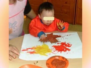 As crianças da escola andaram, celebraram aniversários em setembro e outubro, exploraram a natureza com folhas e frutos de outono, fizeram pintura com folhas, experiências sensoriais com frutos, e exploraram instrumentos musicais.