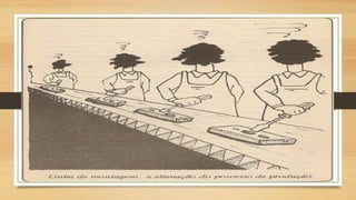 O documento discute como o trabalho mudou na era industrial e capitalista, tornando-se mais dependente de grandes organizações e empresas. O trabalho autônomo deu lugar ao emprego ou desemprego dentro de organizações. Também aborda como o trabalho feminino passou a ser questionado na era industrial.