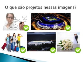 Um projeto é um esforço temporário para criar um produto ou serviço exclusivo. Gerenciamento de projetos envolve aplicar conhecimentos e ferramentas para atender aos requisitos do projeto. A Bíblia ensina a importância de planejamento para garantir que um projeto possa ser concluído.