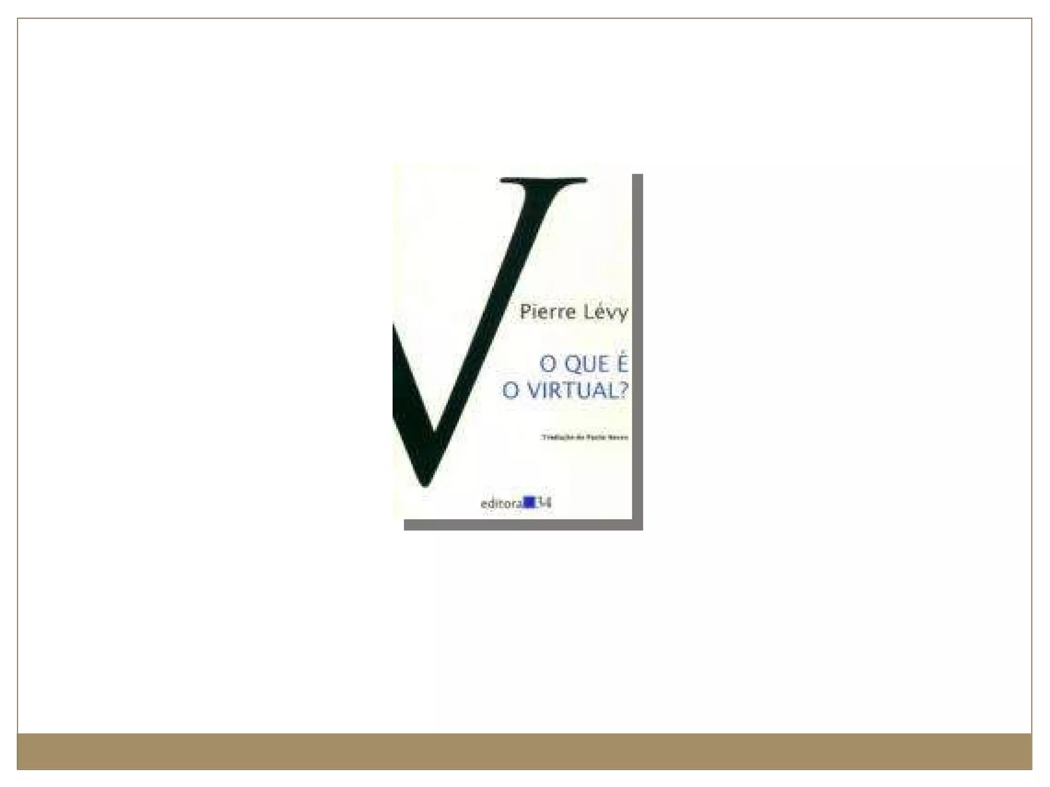 O documento discute a obra e ideias do filósofo Pierre Lévy. Ele nasceu na Tunísia, vive na França e leciona no Canadá, estudando os movimentos da tecnociência e inteligência coletiva. Seu livro "O que é o virtual?" explora como a virtualização afeta não apenas a informação, mas também corpos, economia e comunidades, criando novas formas de estar juntos através da internet.