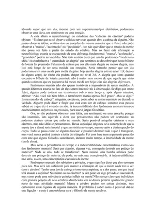 1) O texto discute a natureza da mente e os problemas em definir o que é mental. 2) Historicamente, filósofos e religiões trataram a mente como algo imaterial como a alma ou espírito. 3) Ainda é difícil caracterizar os fenômenos mentais, que são invisíveis e inacessíveis, diferentemente de fenômenos físicos.