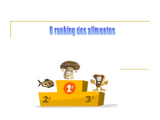 O documento discute a importância de se alimentar de forma saudável, consumindo alimentos nutritivos e de alto valor nutricional. Apresenta uma escala de classificação de alimentos de 0 a 100 e lista diversos itens com suas respectivas pontuações, indicando quais são mais recomendados para a saúde. Também discute os benefícios de nutrientes como ferro, vitaminas e ômega-3, e os riscos do excesso de sódio, açúcar e gorduras.