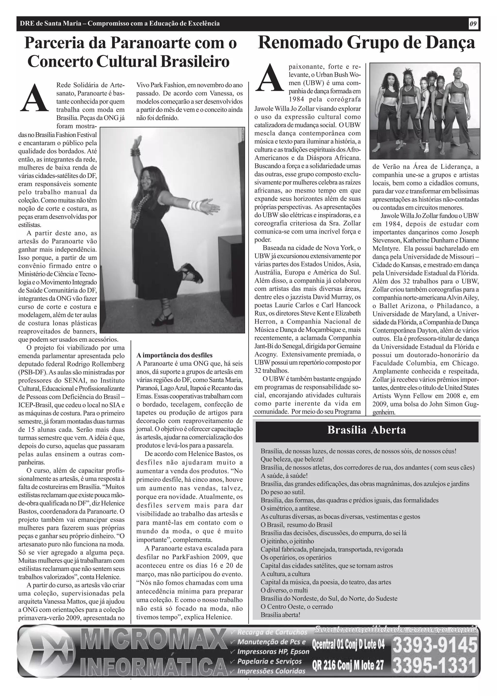 O documento discute (1) uma parceria entre a ONG Paranoarte e o grupo de dança Urban Bush Women para apresentações culturais, (2) um projeto de capacitação profissional para artesãs da Paranoarte em corte e costura financiado pelo governo, e (3) a importância dos desfiles da Paranoarte para dar visibilidade ao trabalho das artesãs, ainda que não aumente diretamente suas vendas.