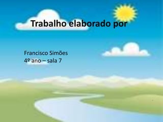 Este documento fornece informações sobre rios em Portugal, incluindo noções básicas sobre rios, os principais rios portugueses e detalhes sobre o rio Minho. Discute o significado de termos como nascente, leito, caudal e afluente e localiza os principais rios de Portugal no mapa. Também fornece detalhes sobre a importância dos rios e características específicas do rio Minho, como sua extensão e espécies de peixes.