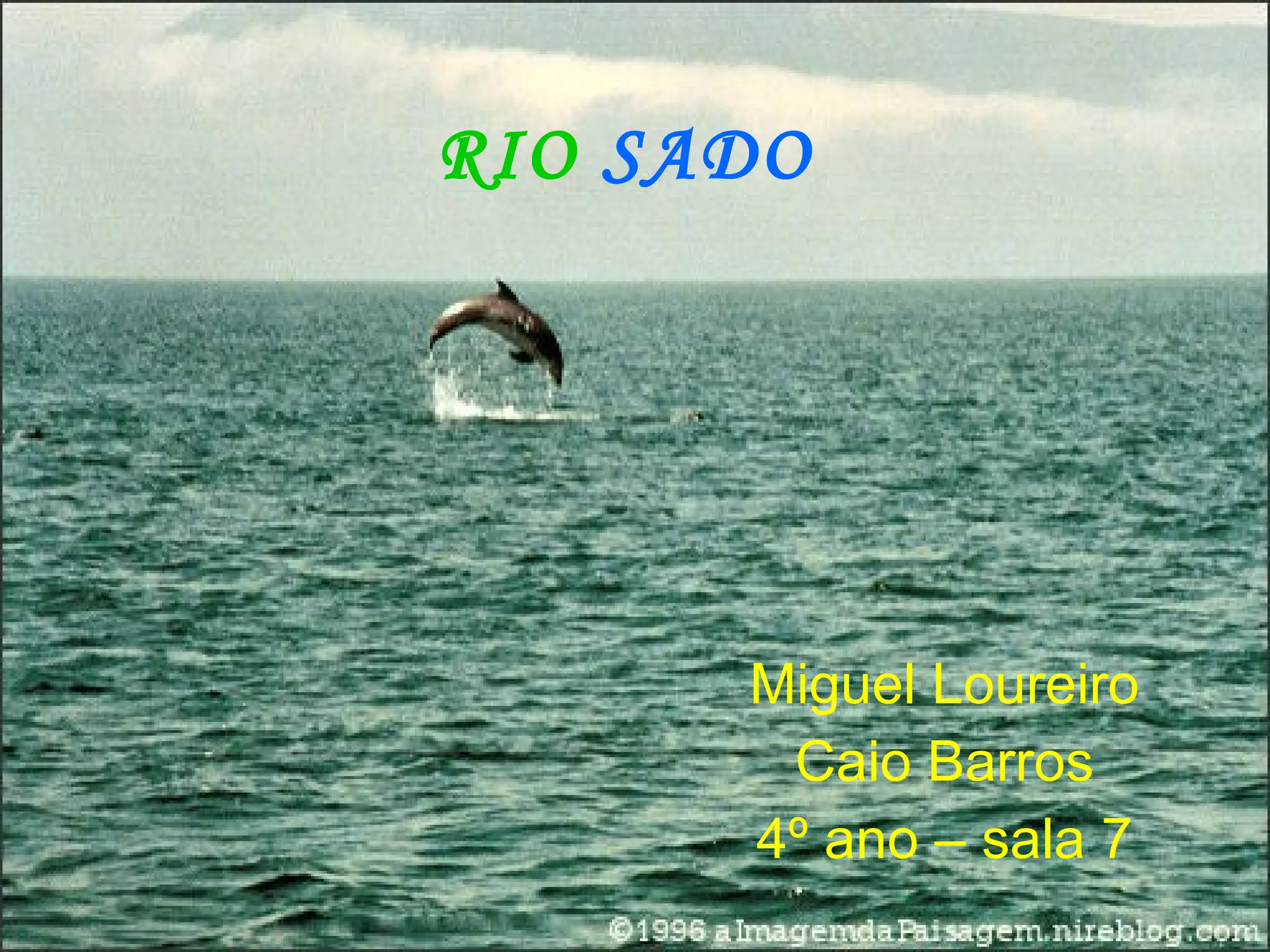 Este documento descreve o rio Sado, o maior rio português a sul do Tejo. O rio Sado nasce na serra do Caldeirão e desagua no Oceano Atlântico perto de Setúbal, correndo de sul para norte por cerca de 175 km, passando principalmente pela cidade de Alcácer do Sal. O estuário do rio Sado abriga diversas espécies de aves e golfinhos e é classificado como Reserva Natural.