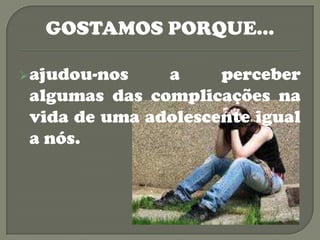 As alunas da 7oD gostaram do livro "Comboio: O Romance de Rita R." porque lhes ajudou a perceber as complicações da vida de uma adolescente. Elas apreciaram porque perceberam que não precisam desistir se gostam de algo, mesmo sem talento. Adoraram também porque aprenderam novas receitas na aula.