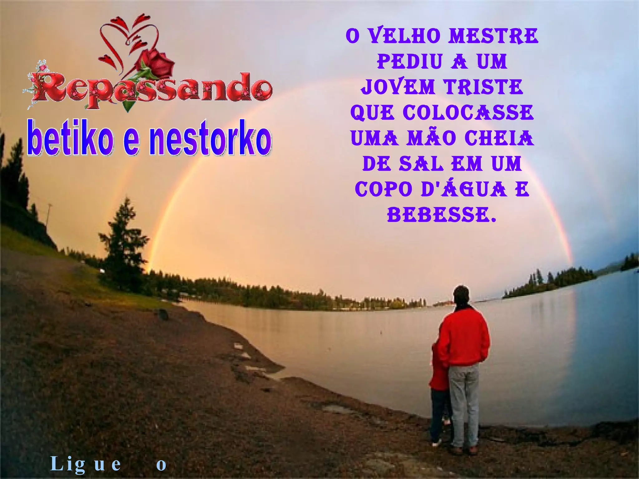Um mestre ensinou um jovem triste uma lição sobre como lidar com a dor. Ele pediu ao jovem para colocar sal em um copo d'água e beber, o que provou ser amargo, e então jogar sal em um lago e beber da água, que não tinha gosto de sal. Isso ilustrou que embora a dor seja a mesma, depende de onde a colocamos como sentimos seu sabor - se concentrados em nós mesmos ou valorizando tudo ao nosso redor.
