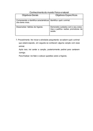 Este documento descreve uma atividade educativa sobre o sapo para crianças de 3-5 anos. A atividade inclui cantar uma canção sobre o sapo, promovendo o desenvolvimento da linguagem oral e da música, e discutir a importância da higiene e dos cuidados com o corpo.