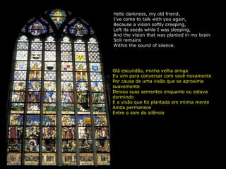 A música "The Sounds of Silence" de Simon & Garfunkel é interpretada em canto gregoriano. A letra descreve uma visão plantada no cérebro do narrador durante o sono sobre pessoas conversando sem falar, ouvindo sem escutar e escrevendo canções sem compartilhar. No final, as pessoas rezam a um deus de néon escrito nas paredes do metrô.
