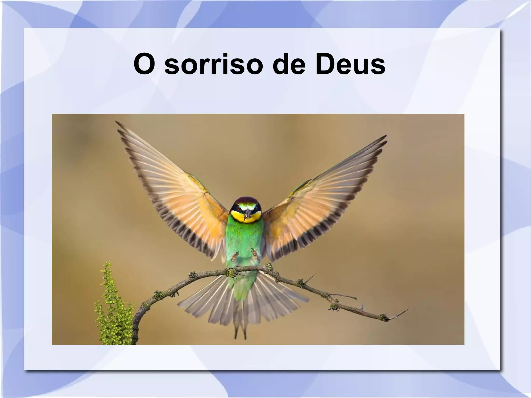 O documento descreve o senso de humor de Deus e como isso encanta a pessoa. Ele menciona que o sorriso de Deus é algo que ama.