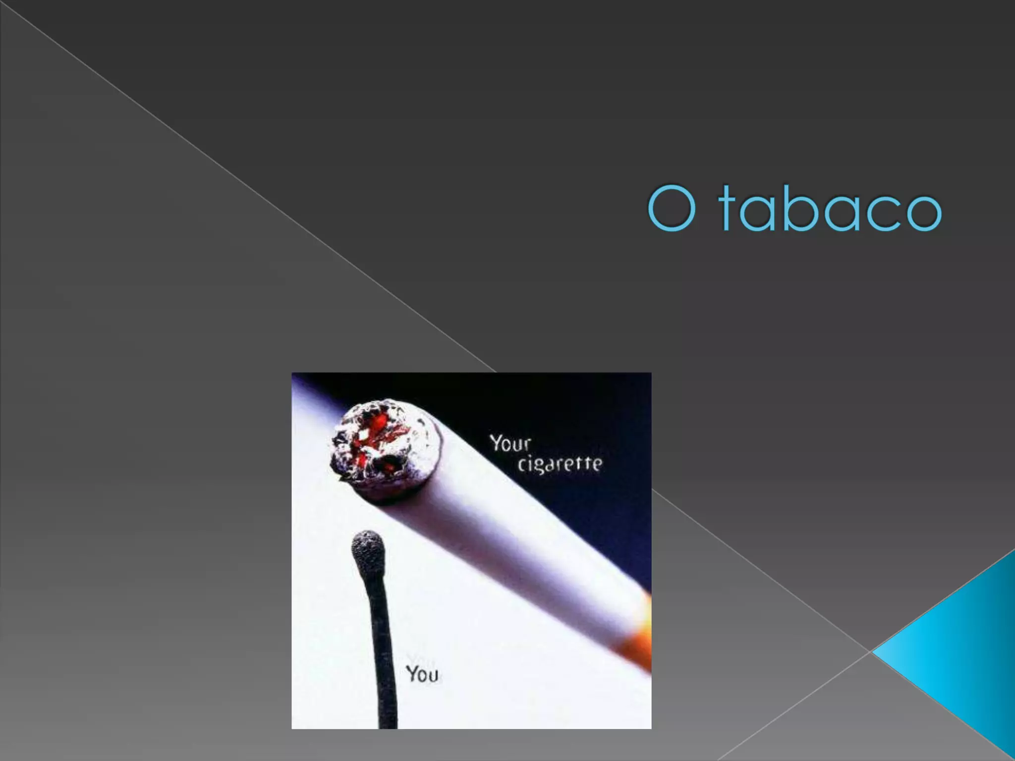 O documento discute os perigos do tabaco para a saúde, listando seus constituintes químicos como alcatrão, nicotina e monóxido de carbono, e seus malefícios como câncer de pulmão, doenças cardíacas e respiratórias. Recomenda os benefícios de não fumar e uma vida saudável.