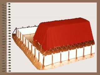 O propósito dotabernáculo era alojar a Arca na qual foram colocadas as tábuas dos Dez Mandamentos. A Arca tinha 2 1/2 côvados x 11/2 côvado, um baú de madeira retangular com sua tampa, o Propiciatório, com os Querubins da glória um de frente ao outro com suas asas estendidas. O sangue era aspergido abaixo, entre os anjos do juízo, que estavam olhando. Quando eles viam o sangue, a ira de Deus era aplacada. A Arca foi revestida de ouro puro e tinha uma coroa de ouro.