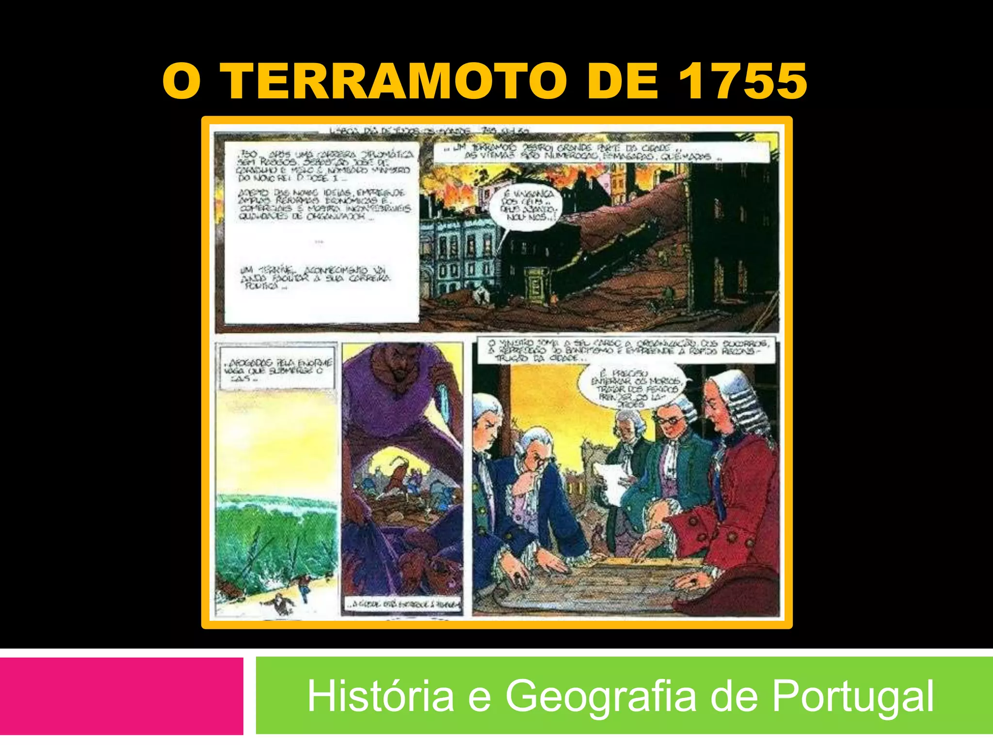 O maior terramoto de que há registo em Portugal ocorreu em Lisboa em 1755, matando cerca de 60 mil pessoas. O terramoto foi seguido por um maremoto e incêndios devastadores que destruíram quase por completo a baixa da cidade. O rei ordenou a reconstrução da baixa após o desastre.