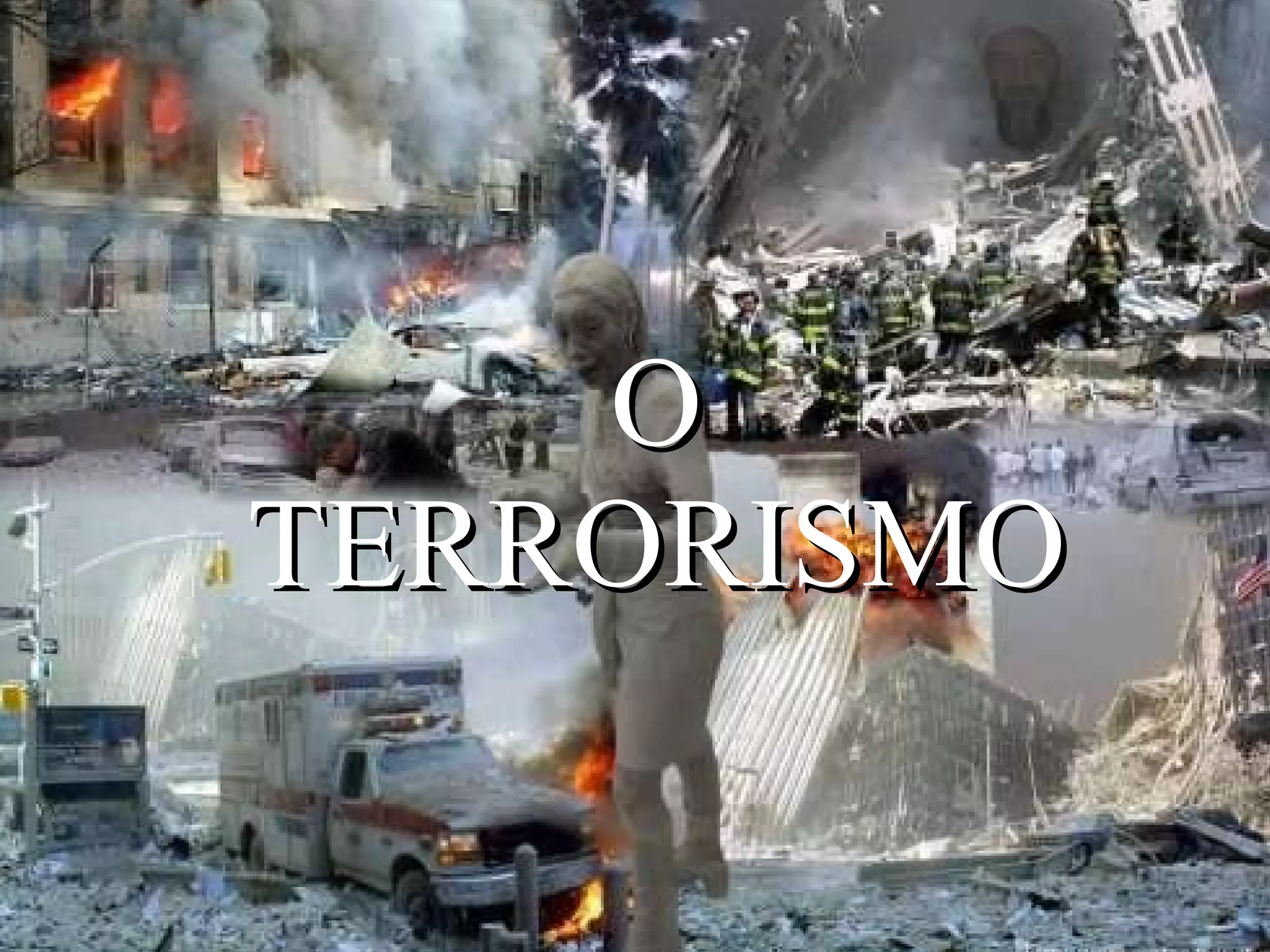 O documento discute o terrorismo, definindo-o como atos de violência física ou psicológica perpetrados por grupos para fins políticos. Detalha alguns grupos terroristas notáveis como Al-Qaeda, ETA e IRA, e descreve ataques terroristas marcantes em Nova York em 2001, Madrid em 2004, Rússia em 2004 e Londres em 2005.