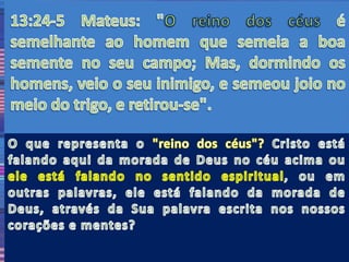 Este documento discute a interpretação correta da parábola do trigo e do joio. Ele afirma que: