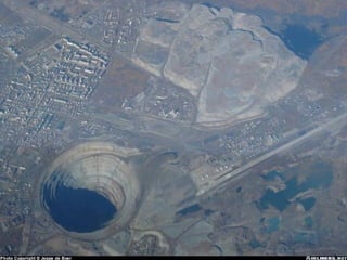 O buraco mais fundo do mundo é uma mina de diamantes na Sibéria Central na Rússia com 525 metros de profundidade e 1,25 km de diâmetro, onde veículos de 13 metros de comprimento são usados para extração. É proibido voar helicópteros sobre o buraco devido a acidentes anteriores causados pela forte sucção.