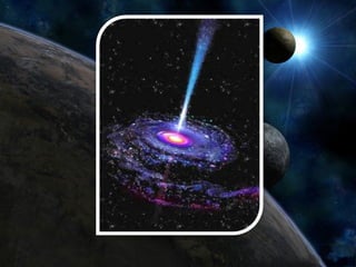 O documento descreve a formação do universo, galáxias e estrelas. Explica que o universo é formado por galáxias e espaço vazio, e que as galáxias são aglomerados de estrelas que podem ser espirais, elípticas ou irregulares. Também descreve a Via Láctea e o Sistema Solar dentro dela.