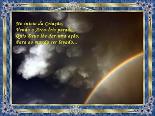 Deus transformou pequenos anjos em borboletas coloridas para levar as cores do arco-íris ao mundo e mostrar às pessoas as cores que há no céu, mas elas sentem saudades de sua vida no espaço e se afastam das cidades, deixando apenas um traço colorido.
