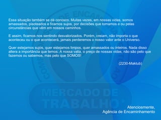 O palestrante amassou e sujou uma nota de 100 dólares na frente de 300 pessoas para mostrar que o valor intrínseco da nota não mudou, assim como o valor das pessoas não depende das circunstâncias da vida. A lição é que as pessoas permanecem valiosas independentemente do que aconteça, pois o valor delas não vem do que fazem ou sabem, mas do que são.