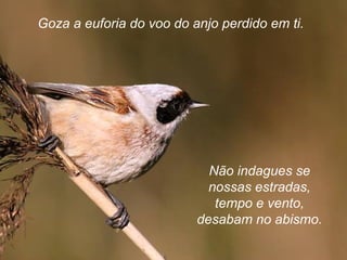 O poema celebra a ilusão e alegria do voo, encorajando o leitor a cantar e desfrutar do momento presente, sem se preocupar com o destino ou fim inevitável.