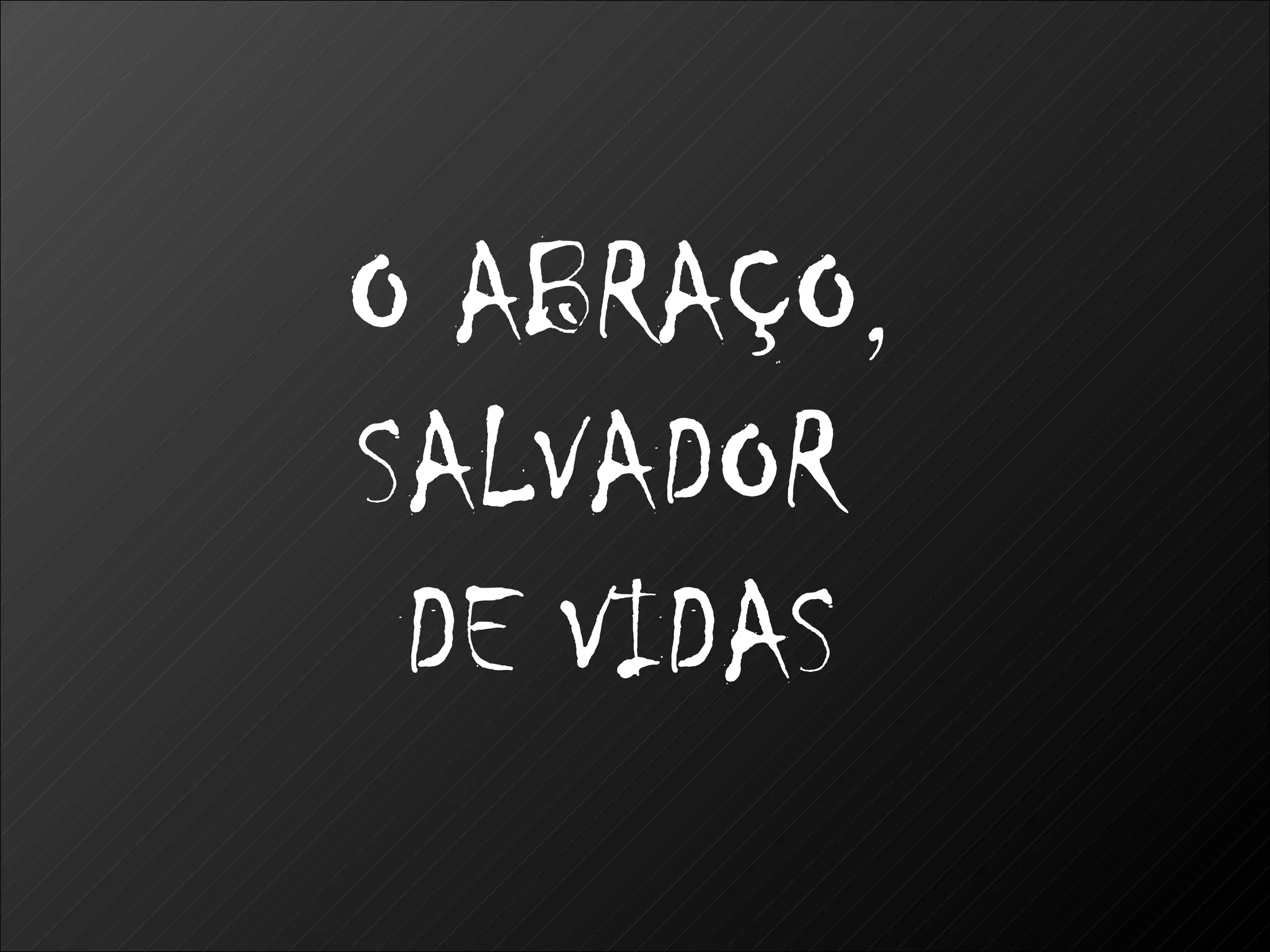 O documento discute os benefícios físicos e emocionais dos abraços. Abraços promovem segurança, confiança, força e saúde, aliviando dor, depressão e ansiedade. Um exemplo mostra como o abraço de uma gêmea salvou a vida da outra recém-nascida, regulando sua temperatura e pulso.