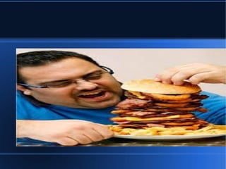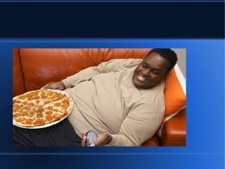 Obesidade é uma doença causada pelo excesso de gordura corporal que pode afetar a saúde. A obesidade ocorre quando a quantidade de energia ingerida é maior do que a quantidade gasto, resultando em um balanço energético positivo por longos períodos. A prevenção da obesidade envolve ter uma dieta equilibrada, praticar atividade física regularmente e manter um estilo de vida saudável.