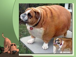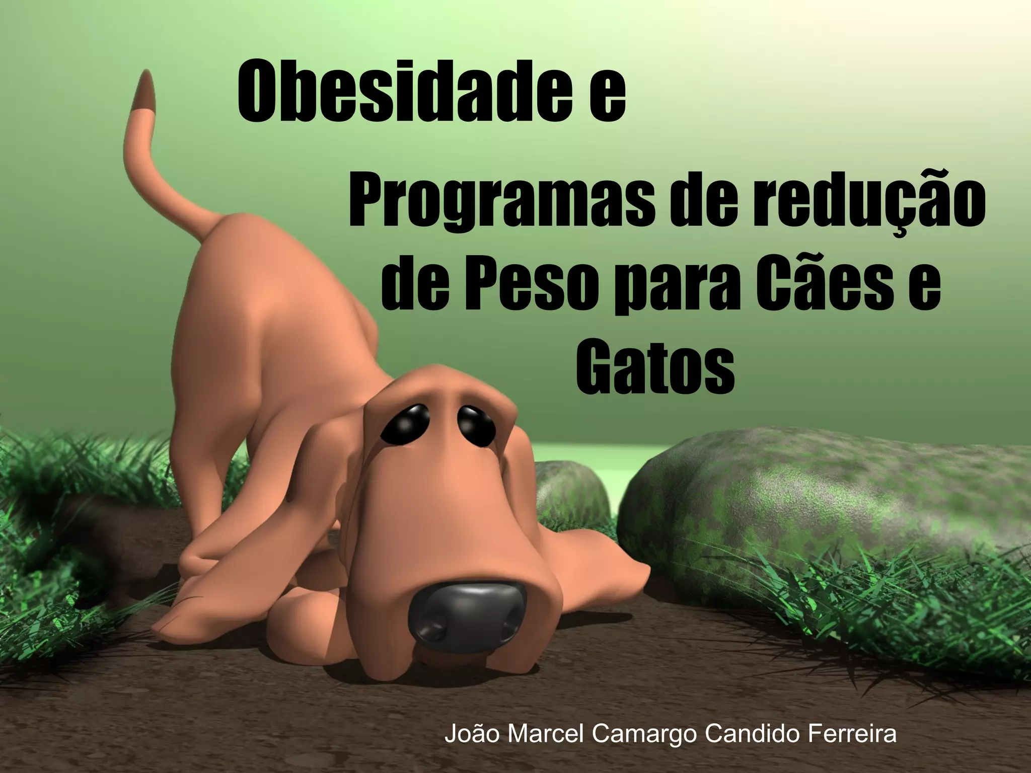 O documento descreve três programas de redução de peso para cães e gatos obesos: o programa UFLA, o método Case et al e o programa GuabiPet. O programa UFLA calcula a quantidade calórica a ser perdida mensalmente com base em 2% do peso corporal atual e estabelece a dieta de acordo. O método Case et al calcula a perda de peso semanal desejada e a restrição calórica necessária. O programa GuabiPet calcula as necessidades energéticas diárias usando expoentes para o peso corporal e estab