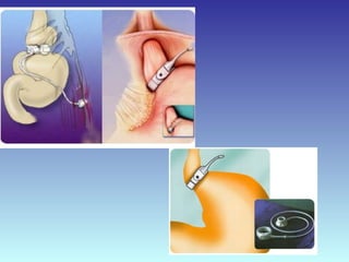 O documento descreve as diferenças entre duas cirurgias para tratar a obesidade: banda gástrica e bypass gástrico. A banda gástrica envolve colocar um anel no estômago para reduzir o tamanho, enquanto o bypass gástrico desvia parte do intestino delgado. Ambas as cirurgias objetivam perda de peso através de redução da ingestão e absorção de alimentos, porém o bypass gástrico geralmente resulta em perda mais rápida de peso.