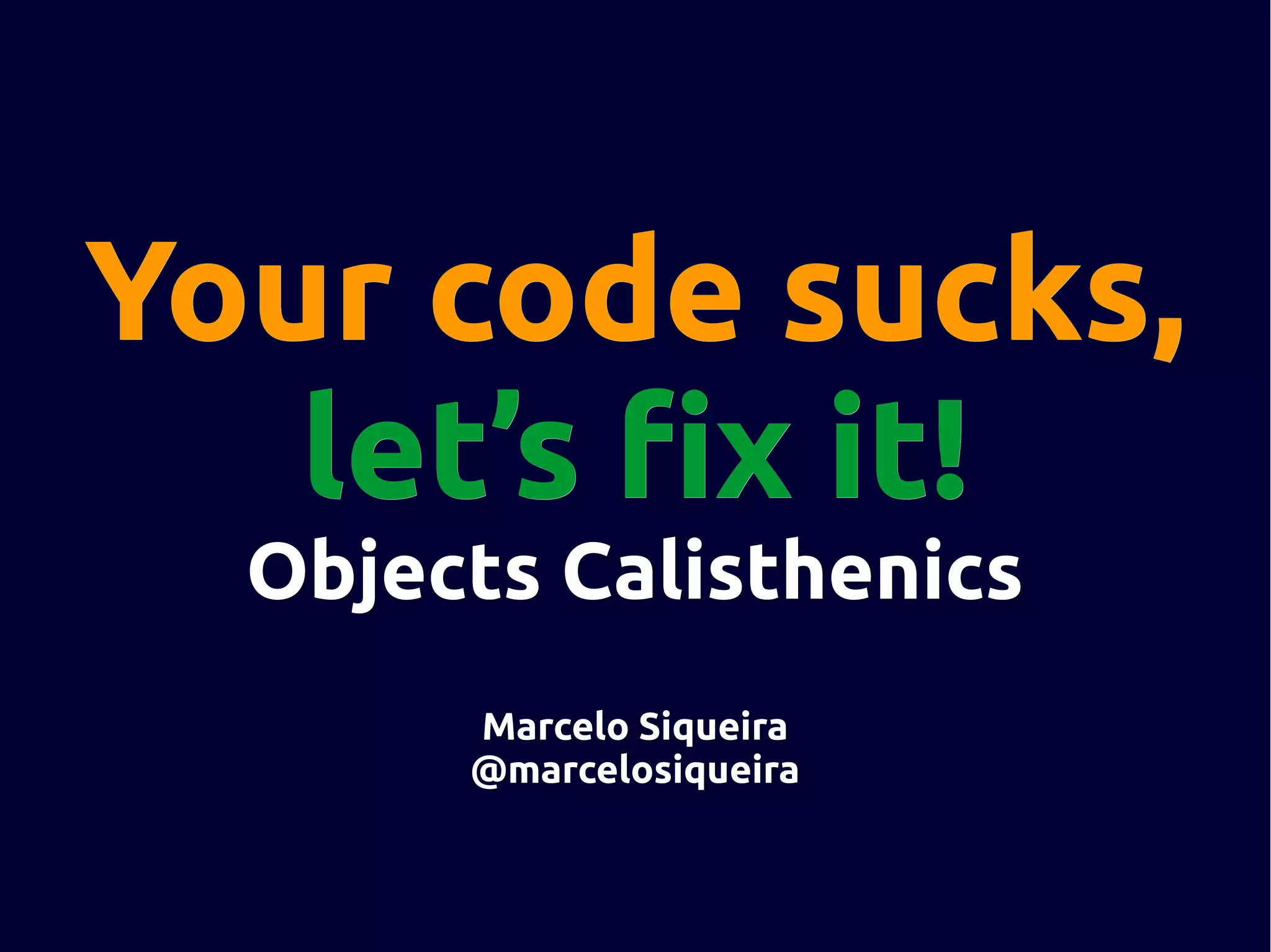 O documento apresenta uma palestra sobre 'Object Calisthenics', que oferece orientações para melhorar a qualidade do código em PHP, enfatizando boas práticas de design orientado a objetos. São discutidas nove regras essenciais para facilitar a legibilidade, manutenção e reusabilidade do código, como limitar a indentação e evitar o uso de getters e setters. O autor, Marcelo Siqueira, promove a capacitação de desenvolvedores na linguagem PHP e destaca a importância da documentação de código.
