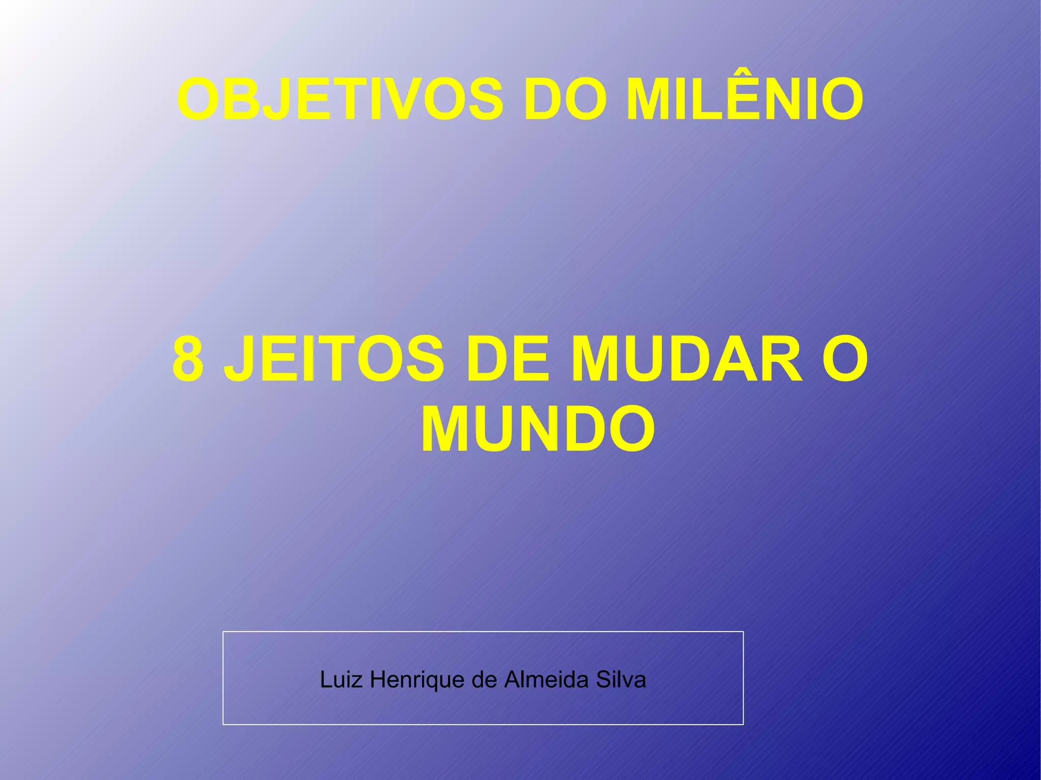 Os 8 Objetivos do Milênio estabelecidos pela ONU em 2000 visam: 1) acabar com a fome e a miséria, 2) garantir educação básica de qualidade para todos, 3) alcançar igualdade entre os sexos e valorizar as mulheres.