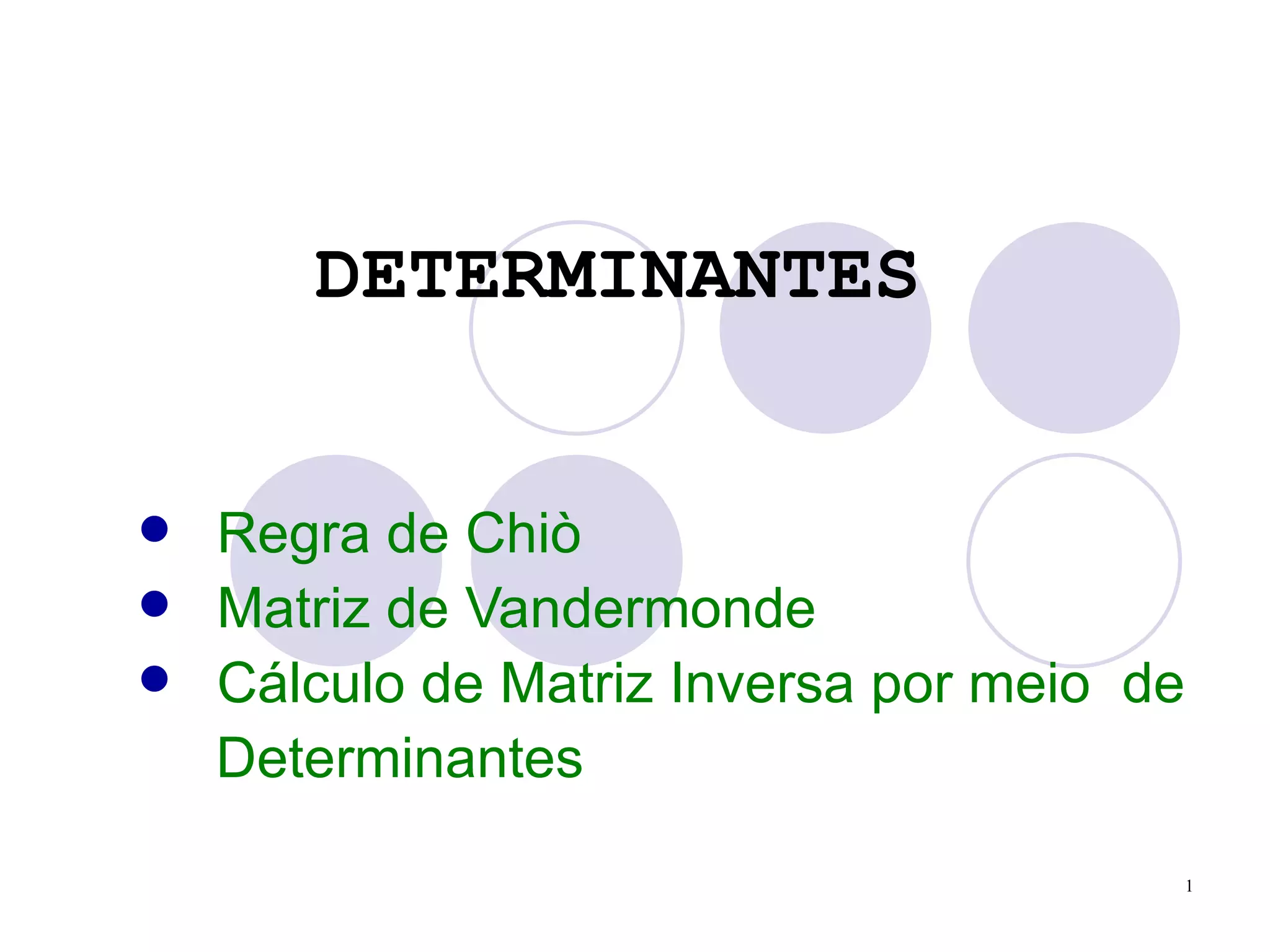 2) A regra de Chiò permite calcular determinantes de ordem maior que 4 reduzindo a ordem de 1.