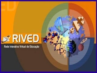 O documento descreve o RIVED, um programa do governo brasileiro que produz objetos de aprendizagem digitais. O RIVED tem como objetivos produzir conteúdos educacionais digitais, estimular o pensamento crítico dos estudantes, melhorar o aprendizado e promover o acesso gratuito aos materiais. Equipes formadas por professores e estudantes de universidades produzem os objetos de aprendizagem, que são atividades interativas como animações e simulações. O documento fornece detalhes sobre como encontrar, baixar