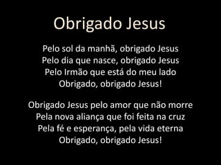 O documento é uma canção de agradecimento a Jesus por vários aspectos da vida, incluindo o sol, o ar, o pão e a chuva, bem como pelo amor que não morre, a nova aliança feita na cruz e pela fé, esperança e vida eterna.