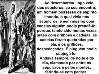 O documento discute obsessão, definindo-a como a dominação de pensamentos e ações por espíritos inferiores. Apresenta sinais comuns de obsessão como sonhos ruins e agressividade, e discute causas como imperfeições morais e tratamentos como passes, prece e reconciliação com o obsessor.
