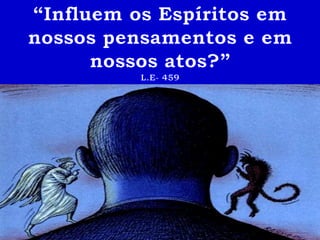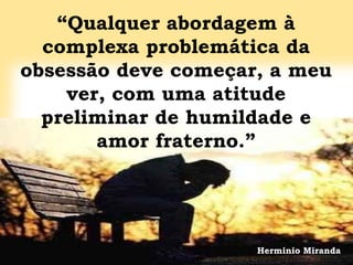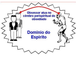 O documento discute a obsessão, que é definida como a influência que um ou mais espíritos tentam obter sobre um indivíduo, desejando prejudicá-lo. A obsessão pode variar desde uma simples influência moral até a perturbação completa do organismo e das faculdades mentais. O obsessor geralmente age por vingança ou covardia, e não é diferente dos seres humanos, ainda presos a paixões e sofrimentos. Qualquer abordagem à problemática da obsessão deve começar com humildade e amor frater