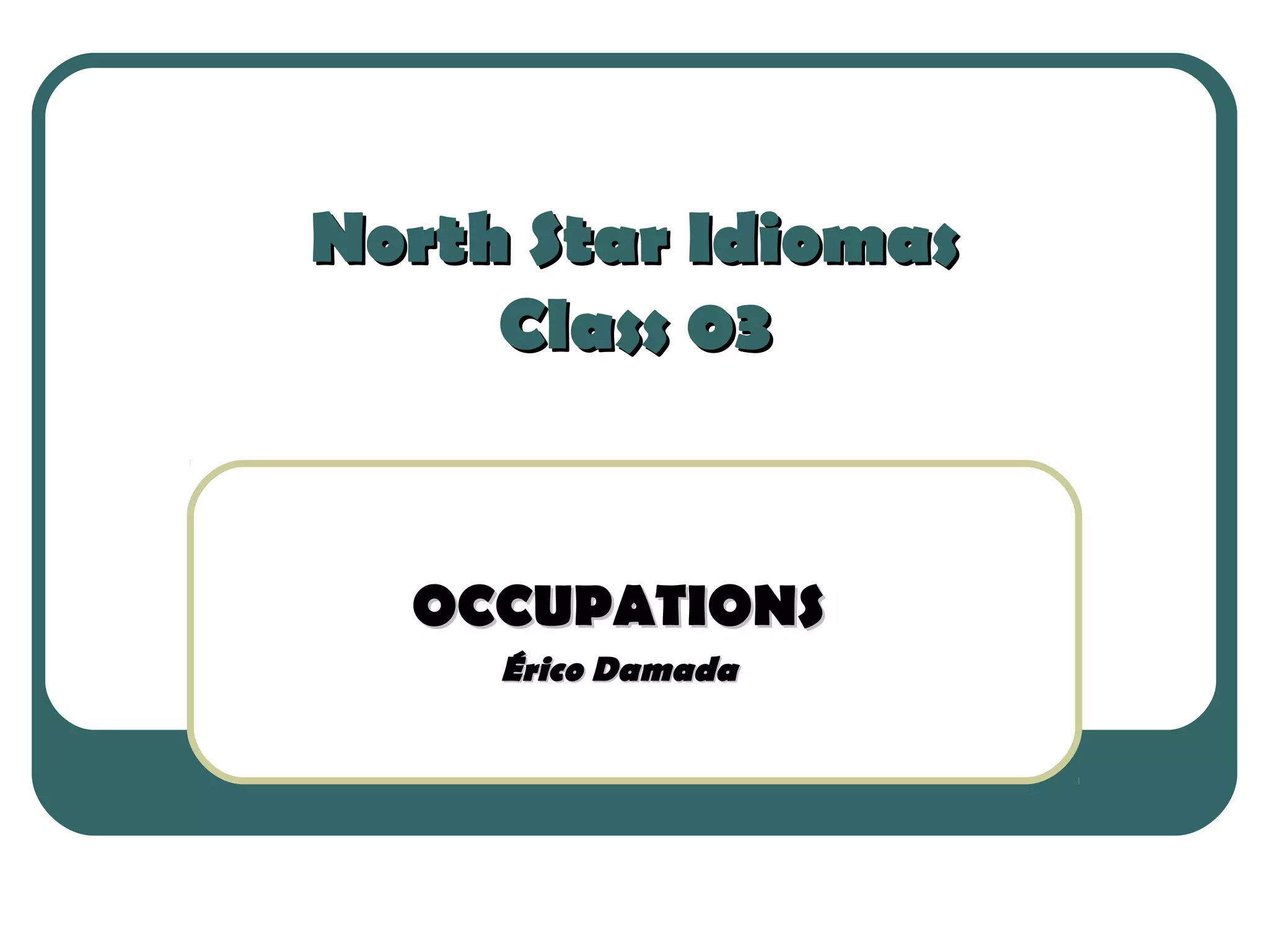 O documento lista várias ocupações, incluindo príncipe, cantor, jogador de futebol, jogador de tênis, estrela de cinema, professor, motorista e político. Também menciona o nome Érico Damada. O contexto parece estar relacionado ao aprendizado de idiomas.