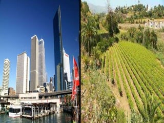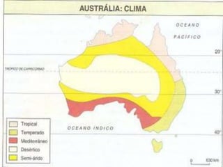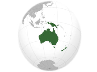 A Oceania é um continente composto por várias ilhas do Oceano Pacífico, incluindo a Austrália, com uma população de aproximadamente 32 milhões de habitantes, sendo o inglês o idioma mais falado. O continente, formado por erupções vulcânicas, abriga 18 países independentes e 25 dependências, e a maioria da população é de origem indígena, exceto na Austrália e Nova Zelândia, onde predominam os europeus. A economia da Oceania varia, com a agricultura e o extrativismo sendo as principais atividades, enquanto a indústria é mais significativa na Austrália.