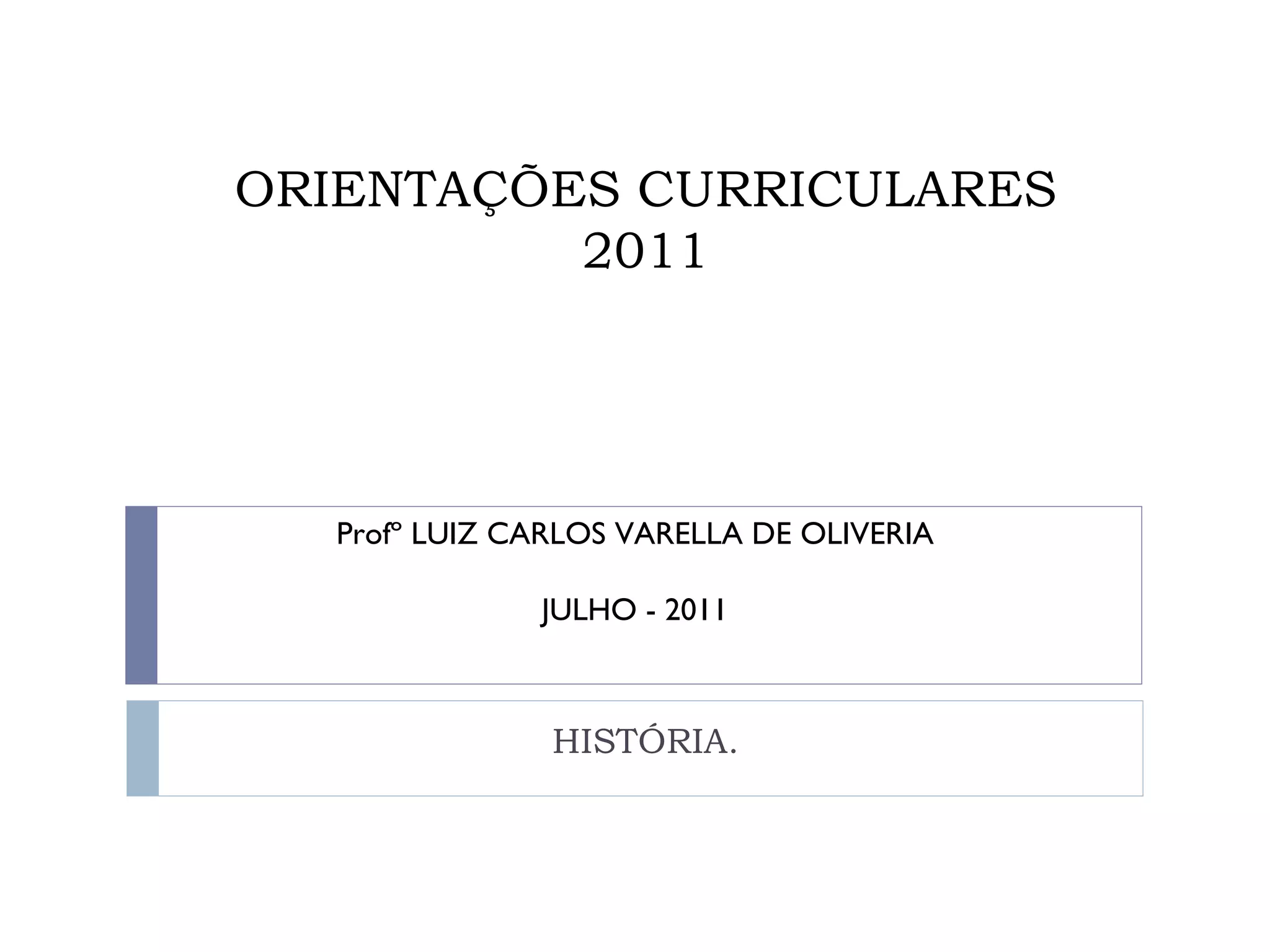 O documento apresenta orientações sobre o ensino de História no Brasil, enfatizando a necessidade de abandonar a memorização mecânica em favor da compreensão crítica e contextual dos processos históricos. É abordada a importância do professor refletir sobre suas práticas educativas e a necessidade de um currículo dinâmico que dialogue com questões sociais, políticas e culturais. Além disso, destaca-se o papel da escola na formação do aluno como um ser social, político e cultural, promovendo a participação coletiva no processo de ensino-aprendizagem.