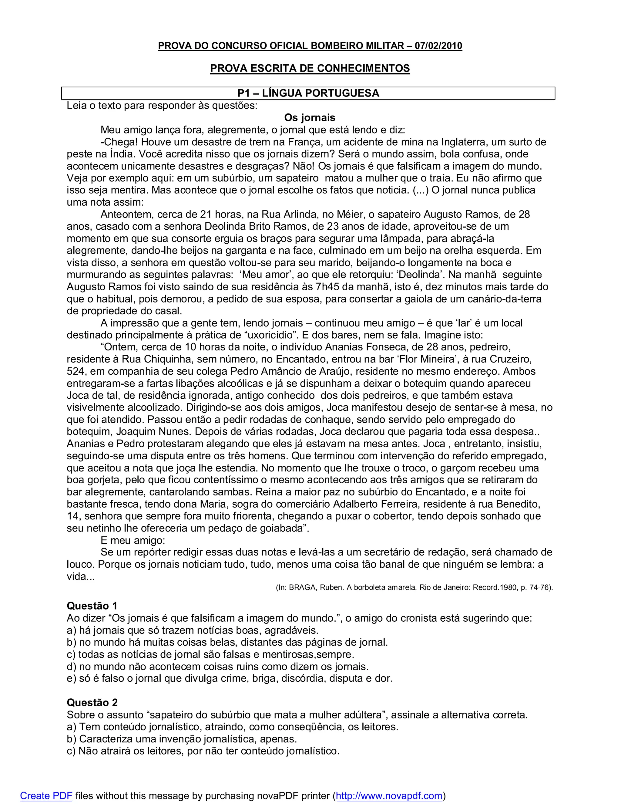 2) A primeira questão trata de um texto sobre como os jornais podem distorcer a imagem do mundo ao escolherem os fatos noticiados.