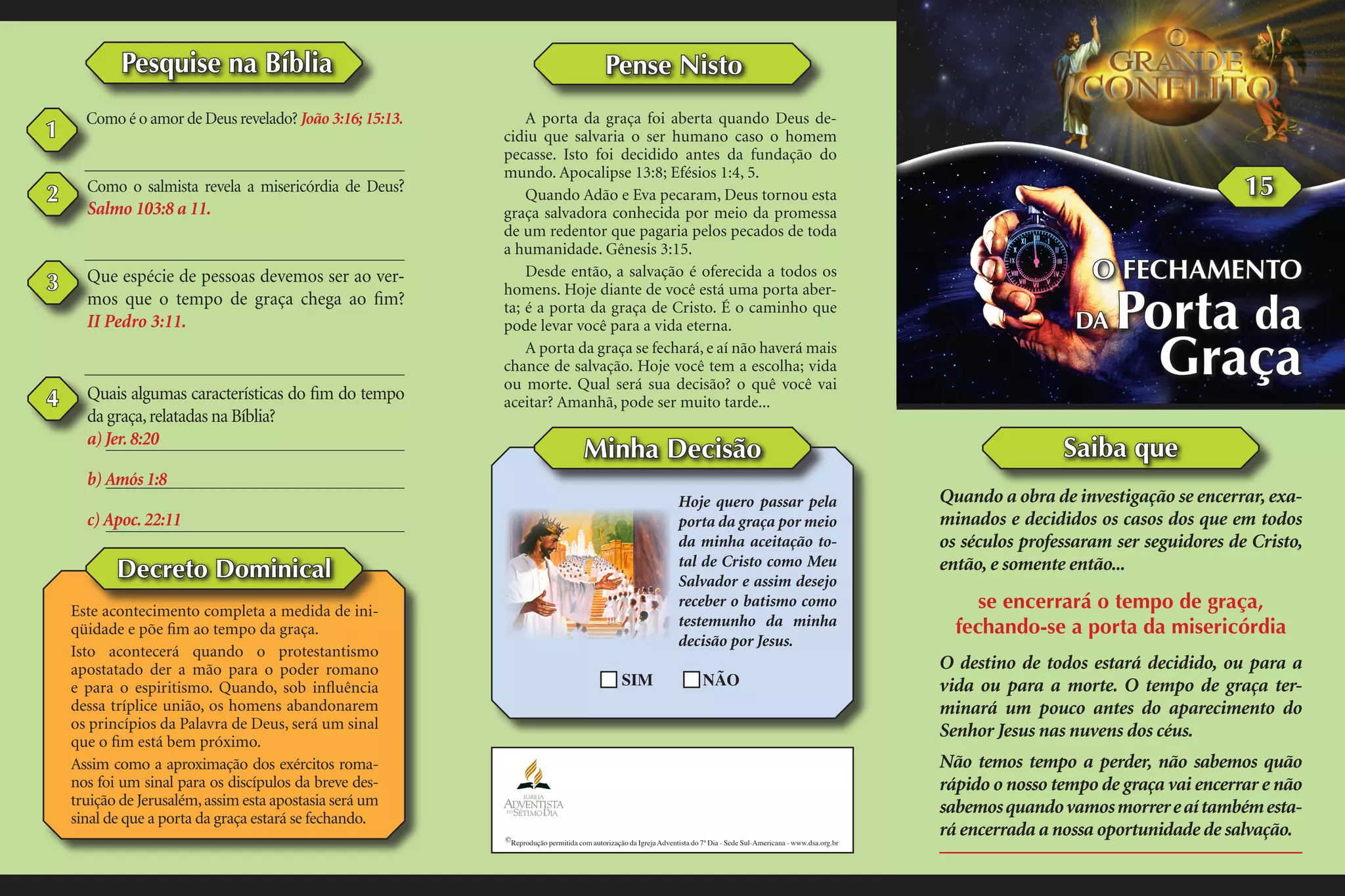 3) No fim dos tempos a porta da graça será fechada quando a intercessão de Cristo no santuário celestial cessar, pouco antes de Sua volta.
