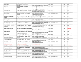 O documento lista informações sobre vários meios de hospedagem em João Pessoa, incluindo nomes, endereços, páginas na internet, telefones, número de leitos e se estão cadastrados na Cadastur. São listados mais de 50 hotéis, pousadas e outros meios de hospedagem localizados principalmente nos bairros de Tambaú, Cabo Branco e Manaíra.