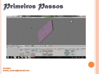 O documento fornece instruções passo-a-passo para modelagem 3D e animação no Blender, incluindo: