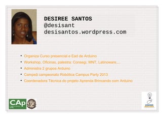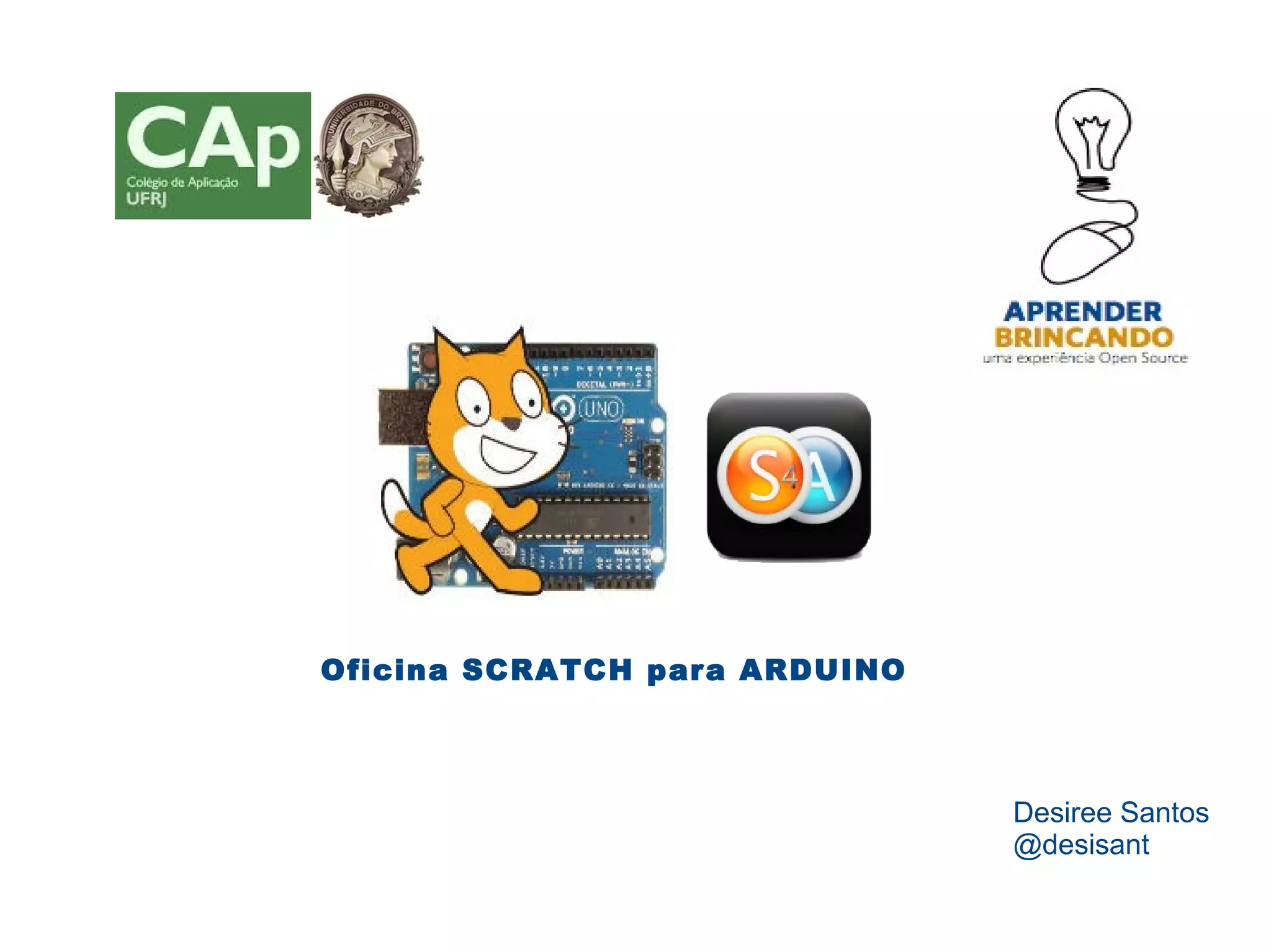 Oficina SCRATCH para ARDUINO apresenta como usar o Scratch para controlar o Arduino, incluindo exemplos básicos de piscar LED e experimentos biológicos. A oficina discute o que é Arduino, quais placas usar, sensores, atuadores, sinais digitais e analógicos. Demonstra como fazer piscar LED no Arduino e no Scratch de forma prática.